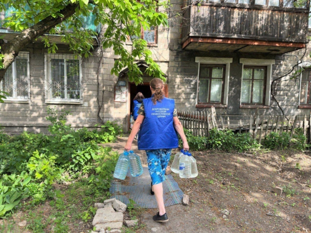 «Потребность в воде в Донецке всегда была очень острой. Сейчас ситуация осложняется тем, что график подачи воды ужесточили, а на улице очень жарко. Воду для технических нужд теперь дают раз в три дня. Пить такую воду опасно, даже если пропустить через фильтр. Наши добровольцы привозят питьевую воду одиноким пожилым и людям с инвалидностью, тем, кто самостоятельно не может выйти из дома и донести тяжелые бутылки», — рассказывает руководитель отдела социального служения Синодального отдела по благотворительности диакон Игорь Куликов.
